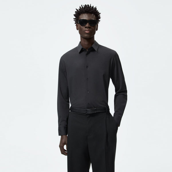 • Slim-fit shirt made of a high-stretch fabric which is resistant to wrinkling. Spread collar and long sleeves with buttoned cuffs. Button-up front.