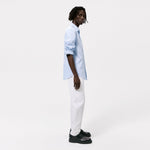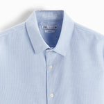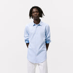 • Slim fit spread collar shirt featuring long sleeves with buttoned cuffs. Button-up front.