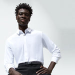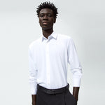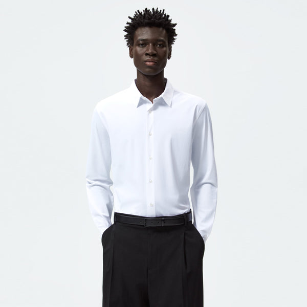 • Slim-fit shirt made of a high-stretch fabric which is resistant to wrinkling. Spread collar and long sleeves with buttoned cuffs. Button-up front.