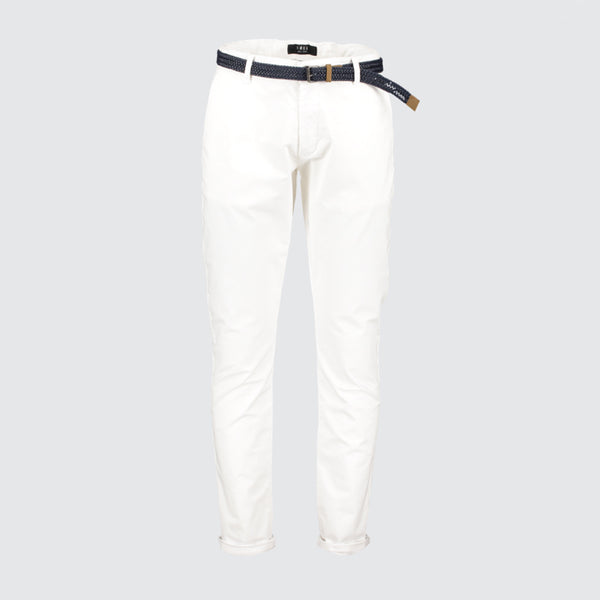 Chinos in washed stretch cotton twill with a zip fly, side pockets . Slim fit which is relaxed over the thighs and tapers from the knees down for a relaxed, well-tailored look.