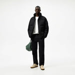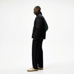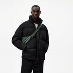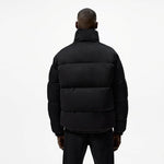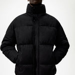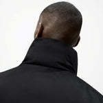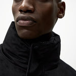 High neck and long sleeves with adjustable cuffs with hook-and-loop straps.
