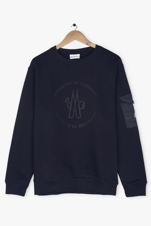• MONCLER ARM POCKET/ RUBBER LOGO SWEATSHIRT NAVY BLUE
