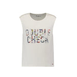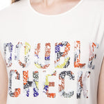 Women's cream t-shirt with sequin inscription Julias by Pepe Jeans.